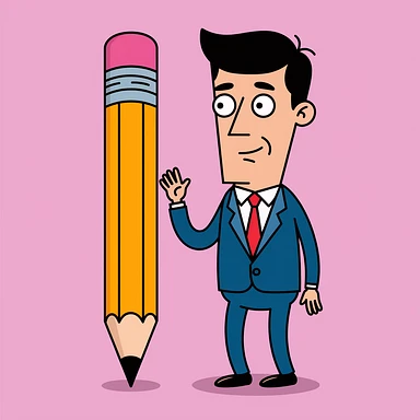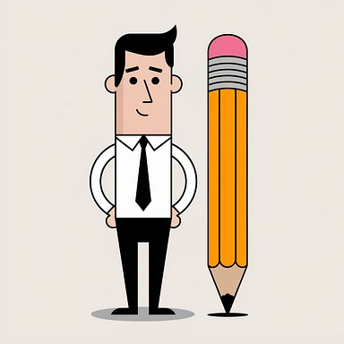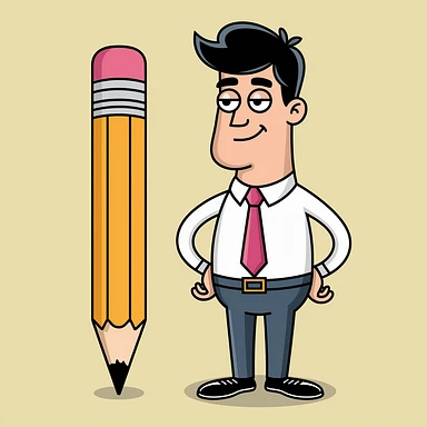 a skinny man standing next to a pencil (cartoon colourful style) emoji