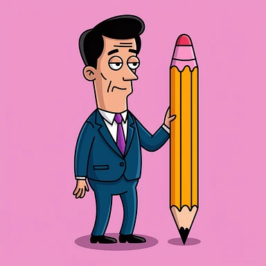 a very thin man next to a pencil (cartoon colourful style) emoji