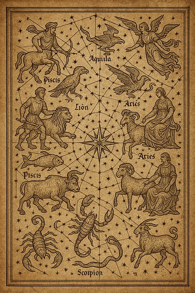 proto gothic ancient star map of constellations emoji