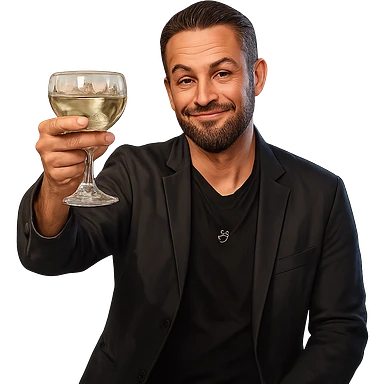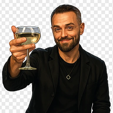 Герой на фотографии в позе и выражением лица из знаменитого мема с Ди Каприо из Великого Гэтсби, слегка рисованный, но при этом реалистичный объемный стиль, прозрачный фон emoji