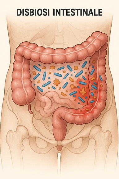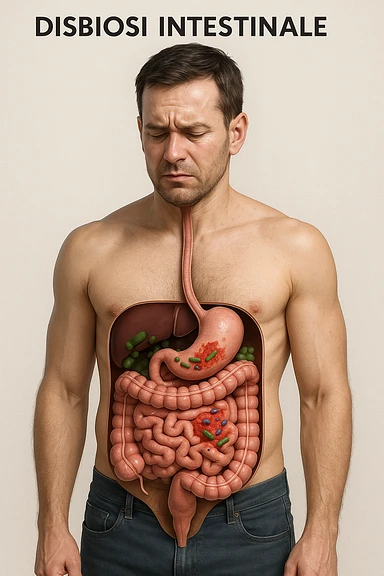 disbiosi intestinale vista anatomicamente su un uomo in 3D emoji