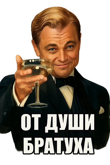 Сделай знаменитый мем с Ди Каприо из Великого Гэтсби, слегка рисованный, но при этом реалистичный объемный стиль, прозрачный фон emoji