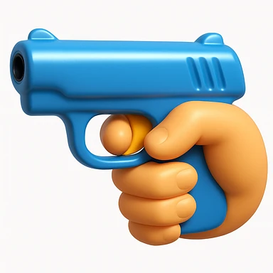 A 3D iOS emoji-style close-up of an index finger pulling a pistol's trigger, showing only the hand and the trigger area inside the trigger guard; stylized, non-realistic toy-pistol look, glossy Apple-style finish, clean white background. emoji