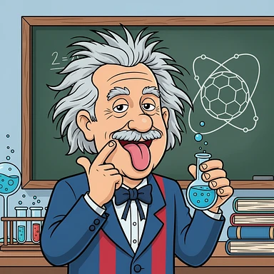 Мультяшный Жоан Лапорта показывает язык в стиле Альберта Эйнштейна emoji