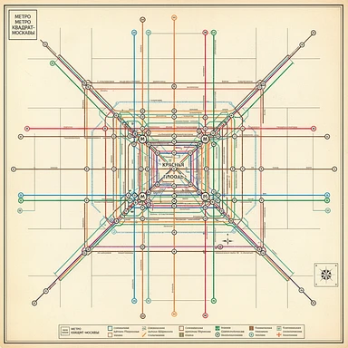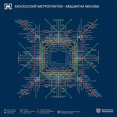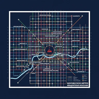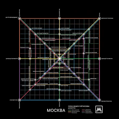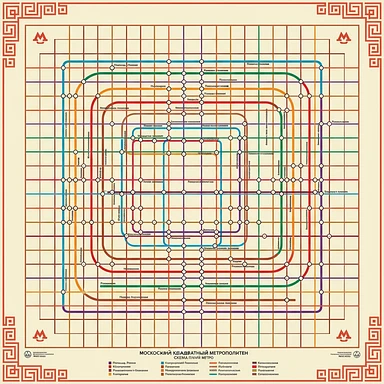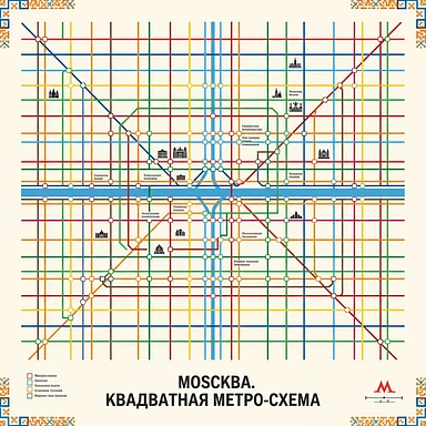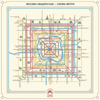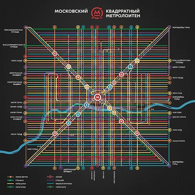 Схема Москвы в стиле московского метро, но если бы Москва была полностью квадратной emoji