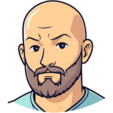 muscular bald man with red goatee and glasses, smiling, wearing a green shirt emoji