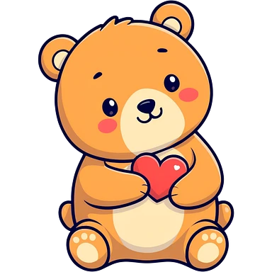 bear carrying a basket of wildflowers, soft pastel brown and cream, cartoonish sticker style emoji