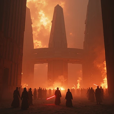 BLASTER FIRE ZIPPING EVERYWHERE, SMOKE, DISTINCTIVE ARCHITECTURE OF A STAR WARS FIGHT SCENE emoji