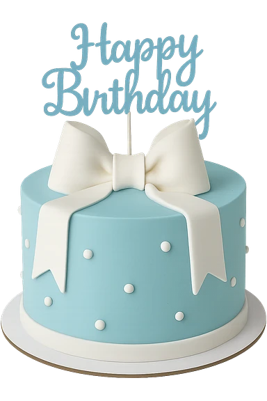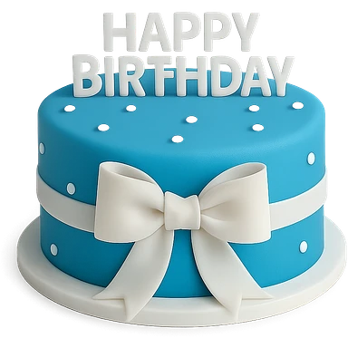 blue birthday cake with white ribbons, remove background emoji