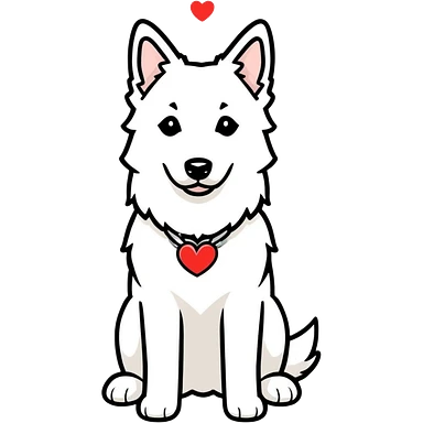White belgian Shepard with a heart collar emoji