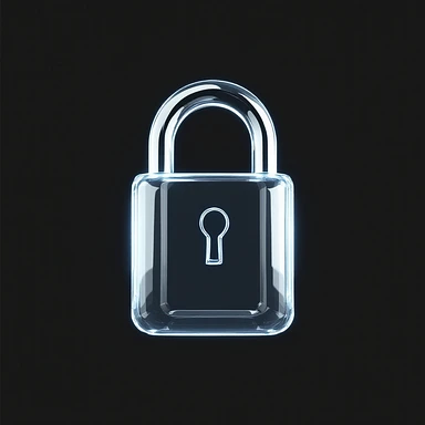 Photo of a 3d made of glass padlock, black solid background, symmetrical 3d render, rim light emoji
