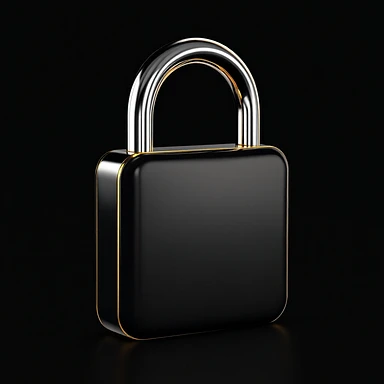 Photo of a 3d glossy padlock, black solid background, 3d render emoji