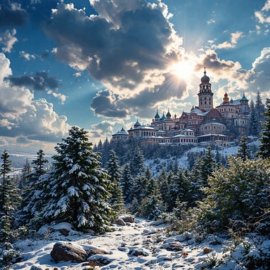 a fantasy dark forest, mountainous jagged terrain, haunted, graveyard, iron fences and stonework, trees, wolves in the distance, thick woods, deep dark purple myst emoji
