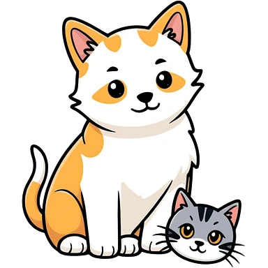 six different cats arranged in a circle, celebrating with party hats, each cat holding a piece of sushi, birthday cake in the center emoji