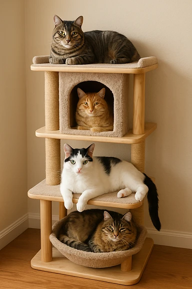 cats relaxing in a vertical playhouse image | AI Emoji Generator