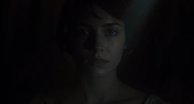 Cinematic scene, Closeup photo of woman face lit with a single ray of light emoji