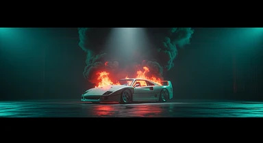 Cinematic still of a ferrari f40 around tornado od arizona desert, sun flare, captured by gopro hero with effect fisheye, water drops on car body, detailed image | AI Emoji Generator