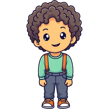 A cartoon drawing of a boy with short black curly hair with glasses and a thoughtful expression he boys face is white and he has black eyes and a black mustache. He is wearing a white hoodie. The background is a light peach color. emoji