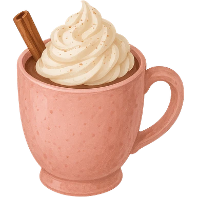 cozy hot chocolate with whipped cream and cinnamon emoji