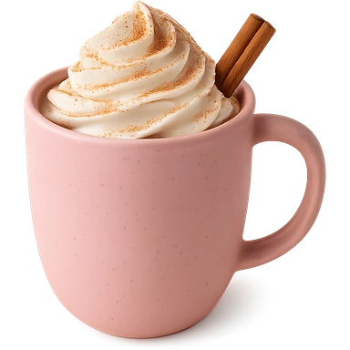 cozy hot chocolate with whipped cream and cinnamon pink, remove background image | AI Emoji Generator