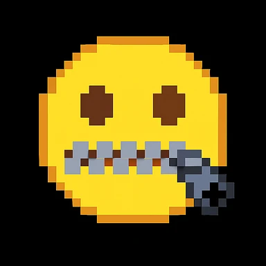 Crea una versione in stile cartoon sticker, ispirata a questa immagine: emoji gialla con occhi semplici e bocca chiusa da una cerniera.image