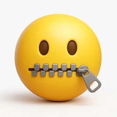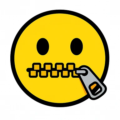 Crea una versione colorata in stile emoji classico, ispirata a questa immagine: emoji gialla con occhi semplici e bocca chiusa da una cerniera. emoji