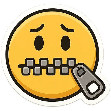 Crea una versione in stile cartoon sticker, ispirata a questa immagine: emoji gialla con occhi semplici e bocca chiusa da una cerniera. emoji