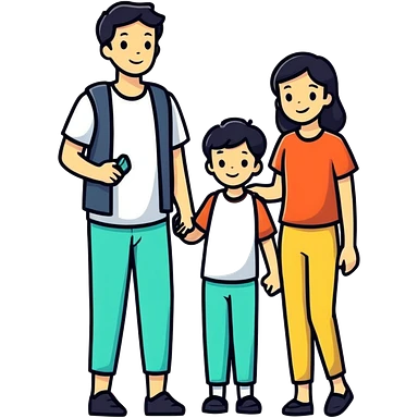 cheerful white family trio - dad with dark black hair, mom and son emoji