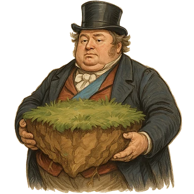 Толстый британский герцог 19 века держит в руках большой пласт земли, слегка рисованный объемный стиль, прозрачный фон emoji