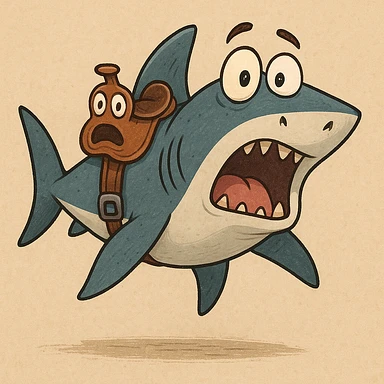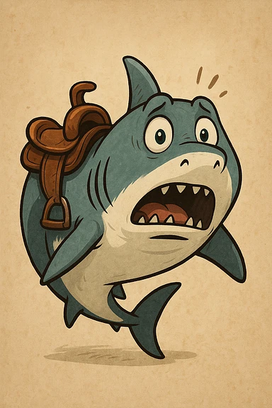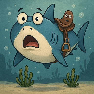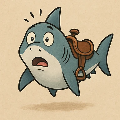 Удивленная акула, на которой седло удивленно смотрит на зрителя emoji