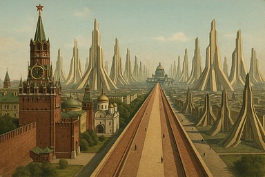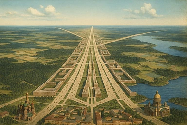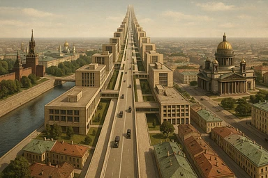 Москва соединена с Санкт-Петербургом и образовывает единый город-луч. Чем-то похожий на NEOM. На одном конце луча Кремль, на другом Исакиевский собор Архивные цветные фото 1920 год emoji