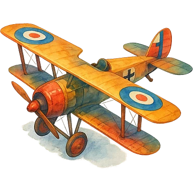 Самолет времен Первой Мировой, слегка рисованный, но объемный стиль, яркие цвета, прозрачный фон emoji
