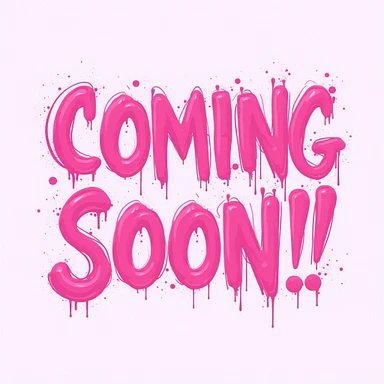 pink splash paint cyber lettering that says "COMING SOON!!!" emoji