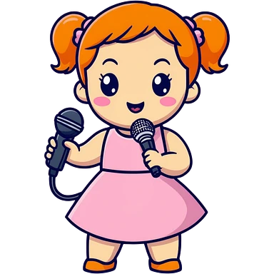 cute, energetic cartoon performer - orange pigtails, pink dress, microphone in hand, and a big "I'm about to rock this stage" pose. emoji