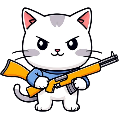 A cute cat with a cute smile hold a shotgun emoji