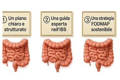 emoji stile iphone di 3 targhette numerate con intestino realistico davanti ad ogni targhetta, le targhette sono: "1 – Un piano chiaro e strutturato 2 – Una guida esperta nell’IBS 3 – Una strategia FODMAP sostenibile" , iperrealistico 4k emoji