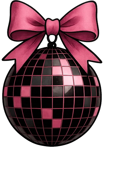 black pink disco ball with bow , remove background emoji