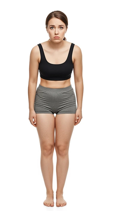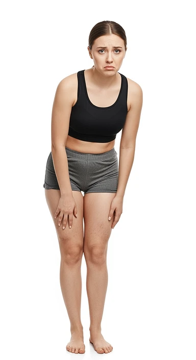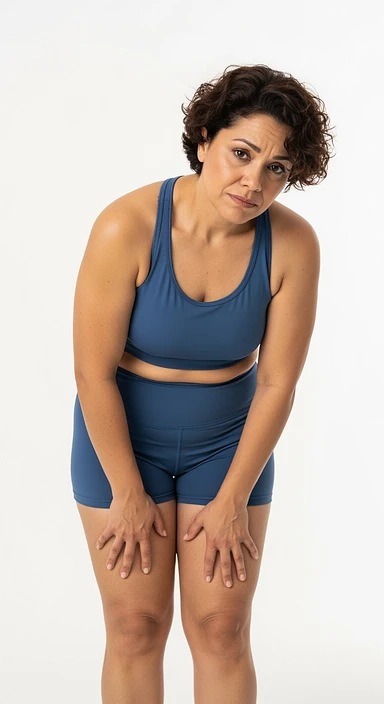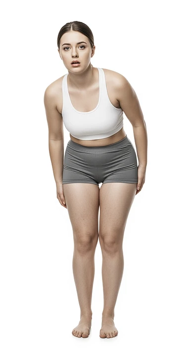 donna fitness con cellulite leggermente piegata in avanti emoji