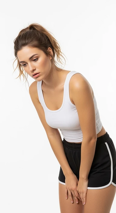 donna fitness con cellulite leggermente piegata in avanti, isolata su sfondo bianco image | AI Emoji Generator