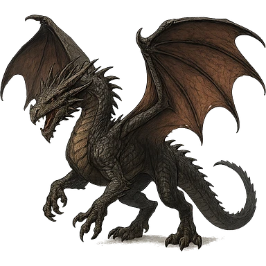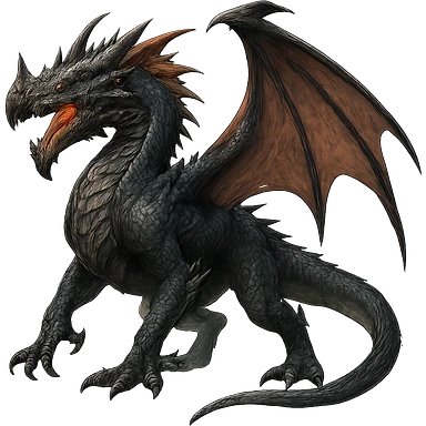 fierce dragon with large wings and scales, breathing fire, fully depicted emoji