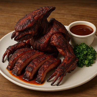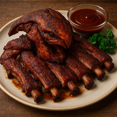 an elite from "Halo: Combat Evolved" except it's cooked and plated as succulent smoked ribs emoji