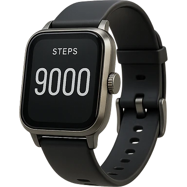 orologio contapassi che segna 9.000 passi sul display, fluttua in aria, iperrealistica 4k, isolato su sfondo bianco emoji