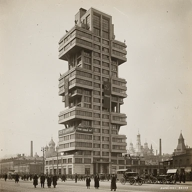 Конструктивистский дом-коммуна на фоне Москвы 1920 года Стиль - архивные снимки emoji