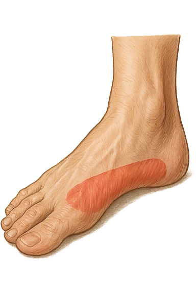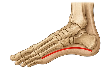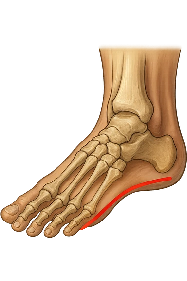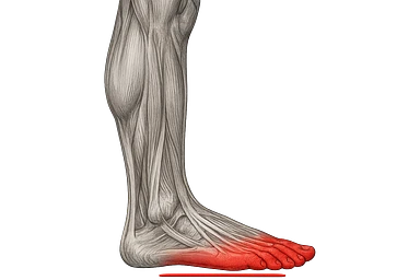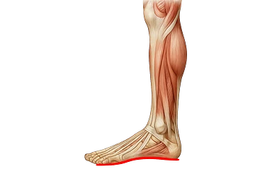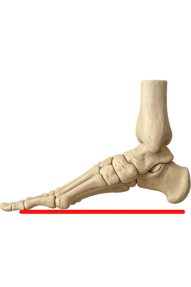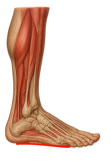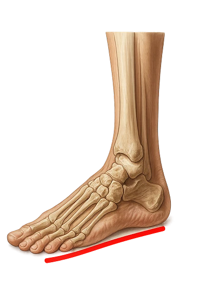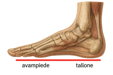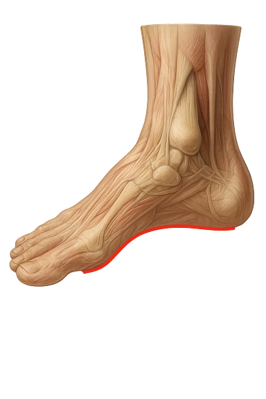 spazio dall'avampiede al tallone umano sottolineato in rosso, fai l'arto umano anatomico realistico con evidenza su quel tratto emoji