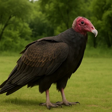 Create a simplified stylized emoji of a vulture wearing a red and black striped shirt inspired by the reference image. The emoji should be clear and recognizable with a simplified design suitable for emoji format. emoji