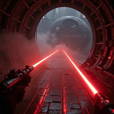 BLASTER FIRE ZIPPING EVERYWHERE, SMOKE, STAR WARS, SHOOTOUT, INSIDE THE DEATH STAR - BACKGROUND emoji