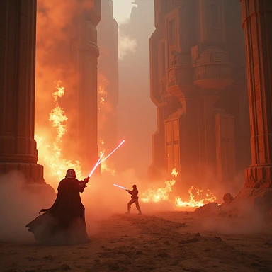 BLASTER FIRE ZIPPING EVERYWHERE, SMOKE, DISTINCTIVE ARCHITECTURE OF A STAR WARS FIGHT SCENE emoji