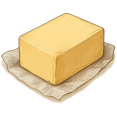 Используй такую рисованную стилистику сгенерируй картинку брикета сливочного масла, прозрачный фон emoji