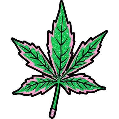 Marijuana leaf that is green and pink with glitter on it emoji