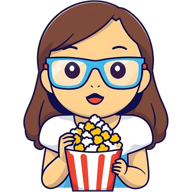 Create a Asian Latina girl with brown hair and eyes eating popcorn and using the 3d glasses they give you at the cinema emoji